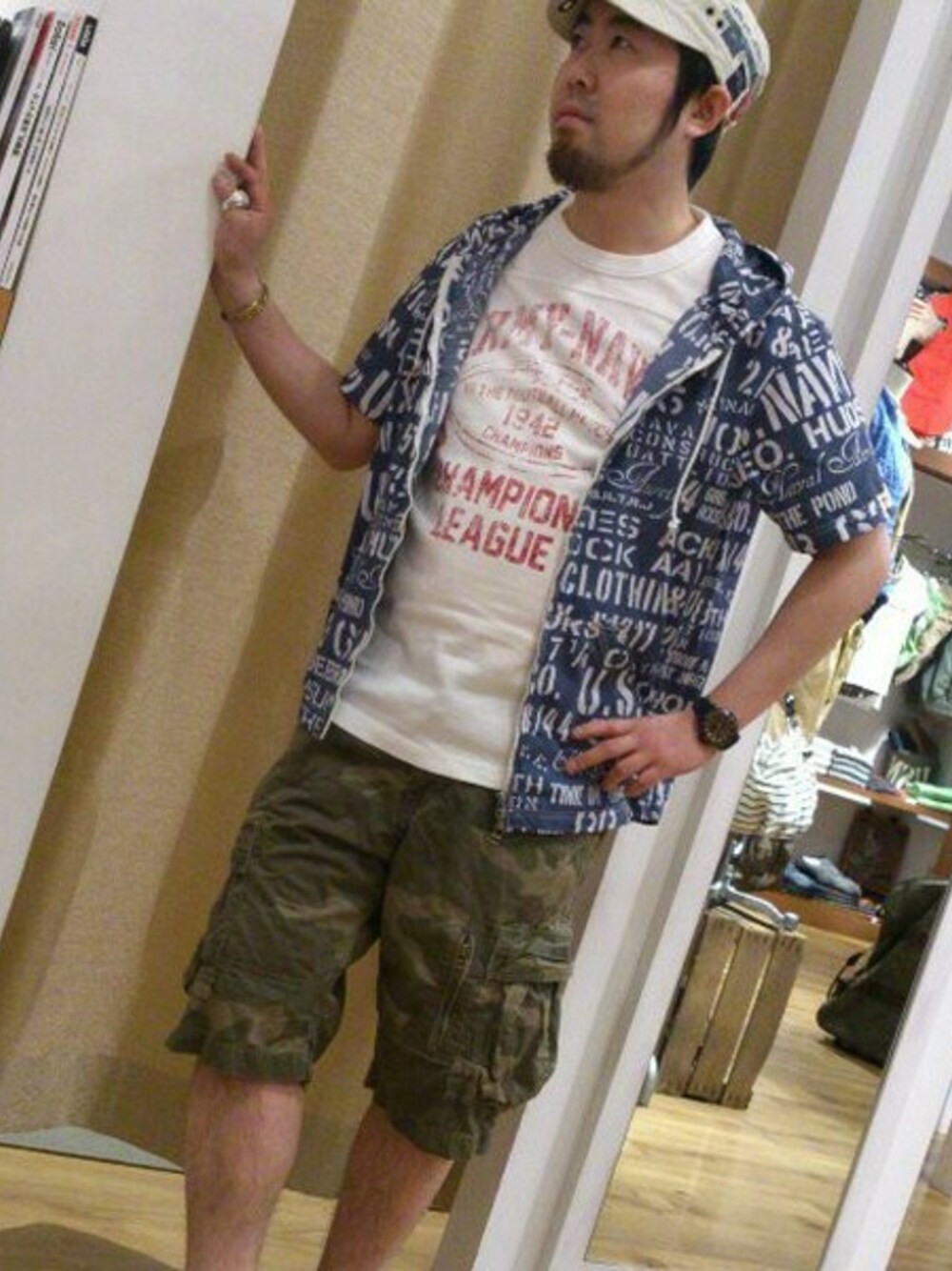 TAKASIのカーゴパンツ「avirex/アヴィレックス/メンズ/EQUIPED BELT SHORTS/エキップド ベルトショーツ」を使ったコーディネート