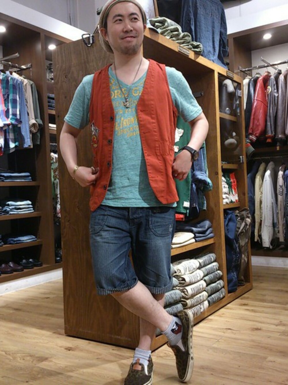 TAKASIのTシャツ/カットソー「AVIREX(アヴィレックス) メンズ オーバープリント Vネック Tシャツ」を使ったコーディネート