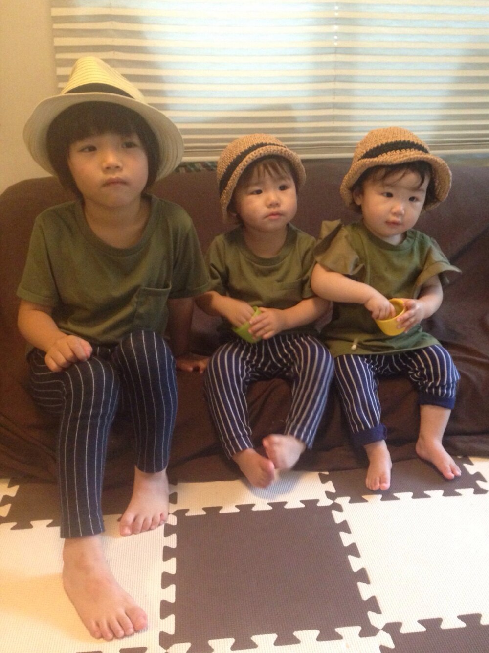 カーキ×ネイビーのおそろいコーデ♡ 女子の袖フリフリ♪ 母も便乗です🙈 今日も覗いていただき、ありがとうございます♡