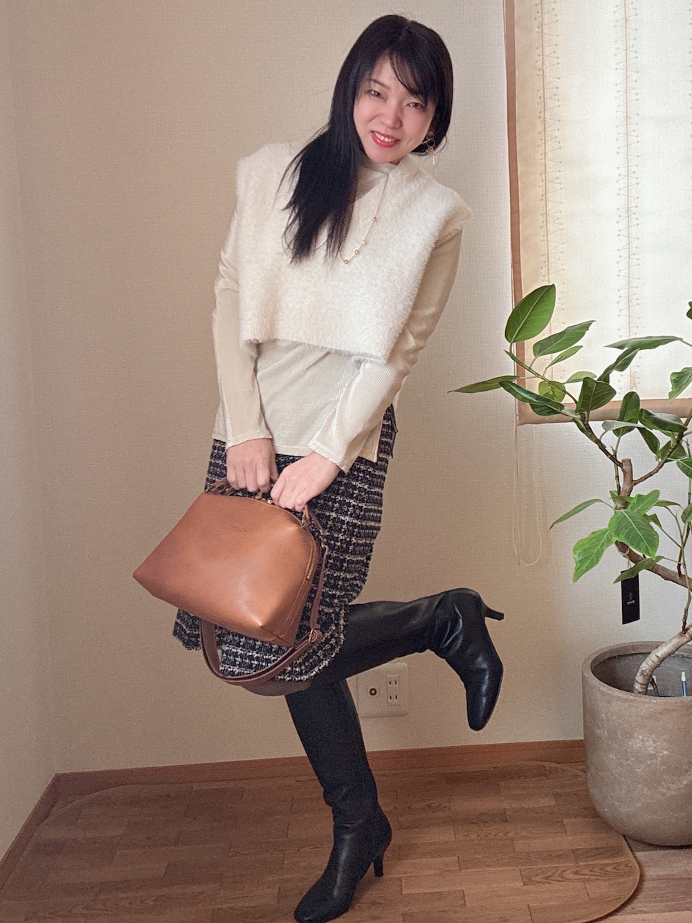 なんと‼️ お洋服は全部LANVIN en Bleuでした🤣 LANVIN一択🤣 20年ぶりぐらいに ハーフパンツを履いてます🥰 流石にためらいましたよ。 でも、試着した瞬間に、 可愛い😍 もう、連れて帰りたくなっちゃった‼️ ロングブーツと👢合わせて 履きたいなーって🩷 気持ちが湧いてきたのね。 ハーフパンツだから かなりカジュアルめにみえるので、 ロングブーツかつ細めのヒールがオススメ✨ 細めのヒールが、 女らしさ、キレイめ感を引き出してくれる。 ヒールの細いパンプスにしても、 脚をキレイに魅せてくれるよ✨ ラメの薄手のタートルのトップスと ベストもお気に入り🩷 トップスはインせず、 レイヤードスタイルを楽しんで🩷