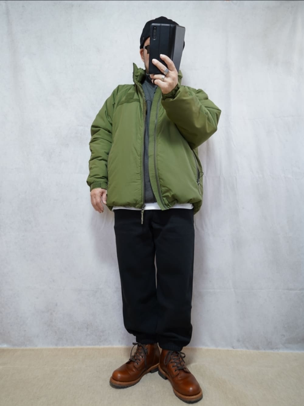 OLIVE DRAB 思った以上に鮮やか。 他の人とは被らない色だと…そう思います。 ECWCS Level7 🟩✨ 散歩スタイルなスウェットパンツとブーツにしました。 けれども、好きな色はコヨーテです。