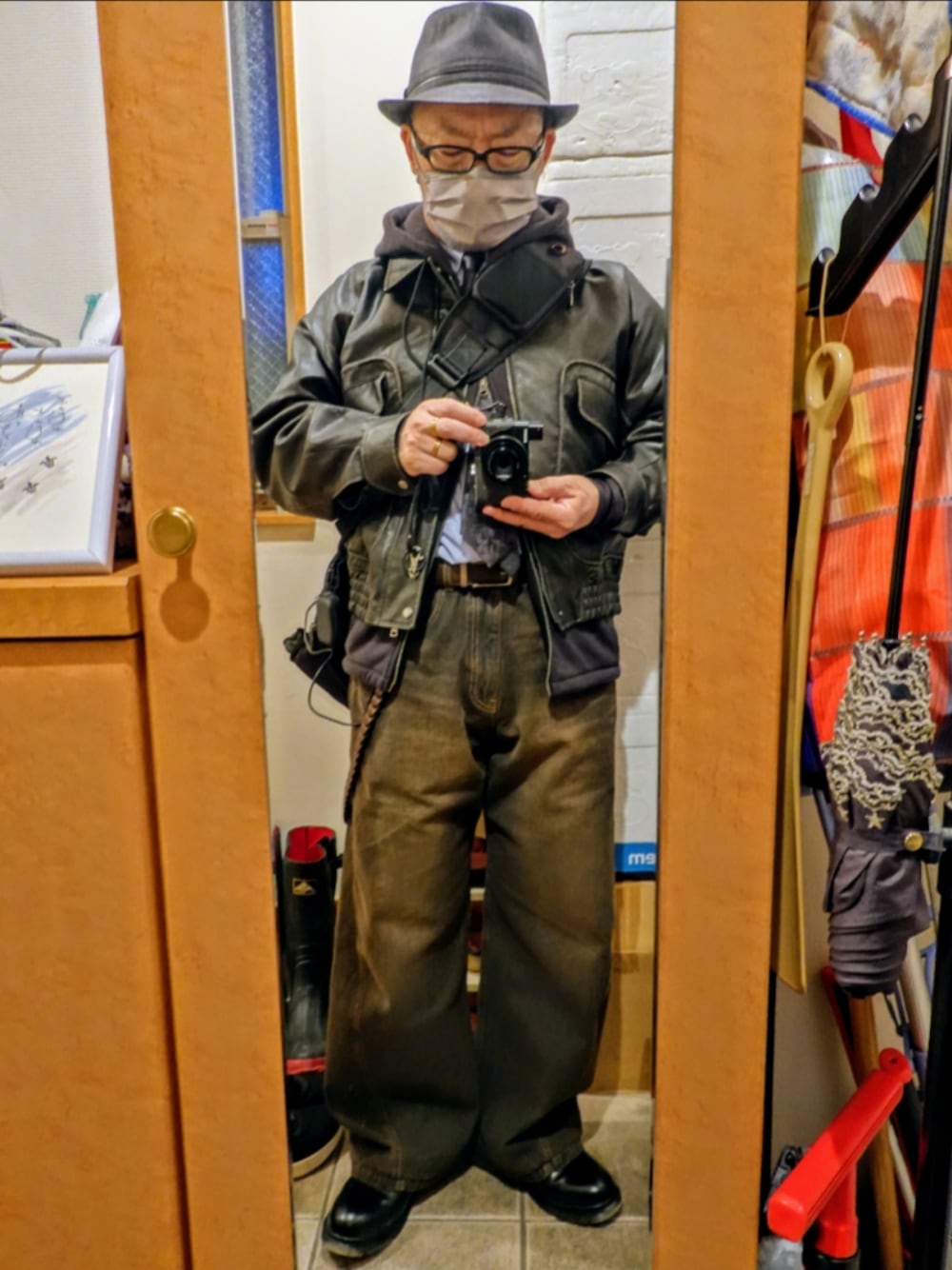 このフライトブルゾン… 本革のような質感と、 着古したビンテージな感じ… この加工による表現が素晴らしい♪〜 細かなボタンの部分もカッコ良いです。 短丈でも身幅は確保されてて、 インナーに裏起毛のパーカー挟んでも… 全然余裕がありつつ、 コンパクトにおさまるので… Aラインシルエットが作りやすいです。 冬から春のヘビロテコーデ… このランキングは上位確定です♪〜
