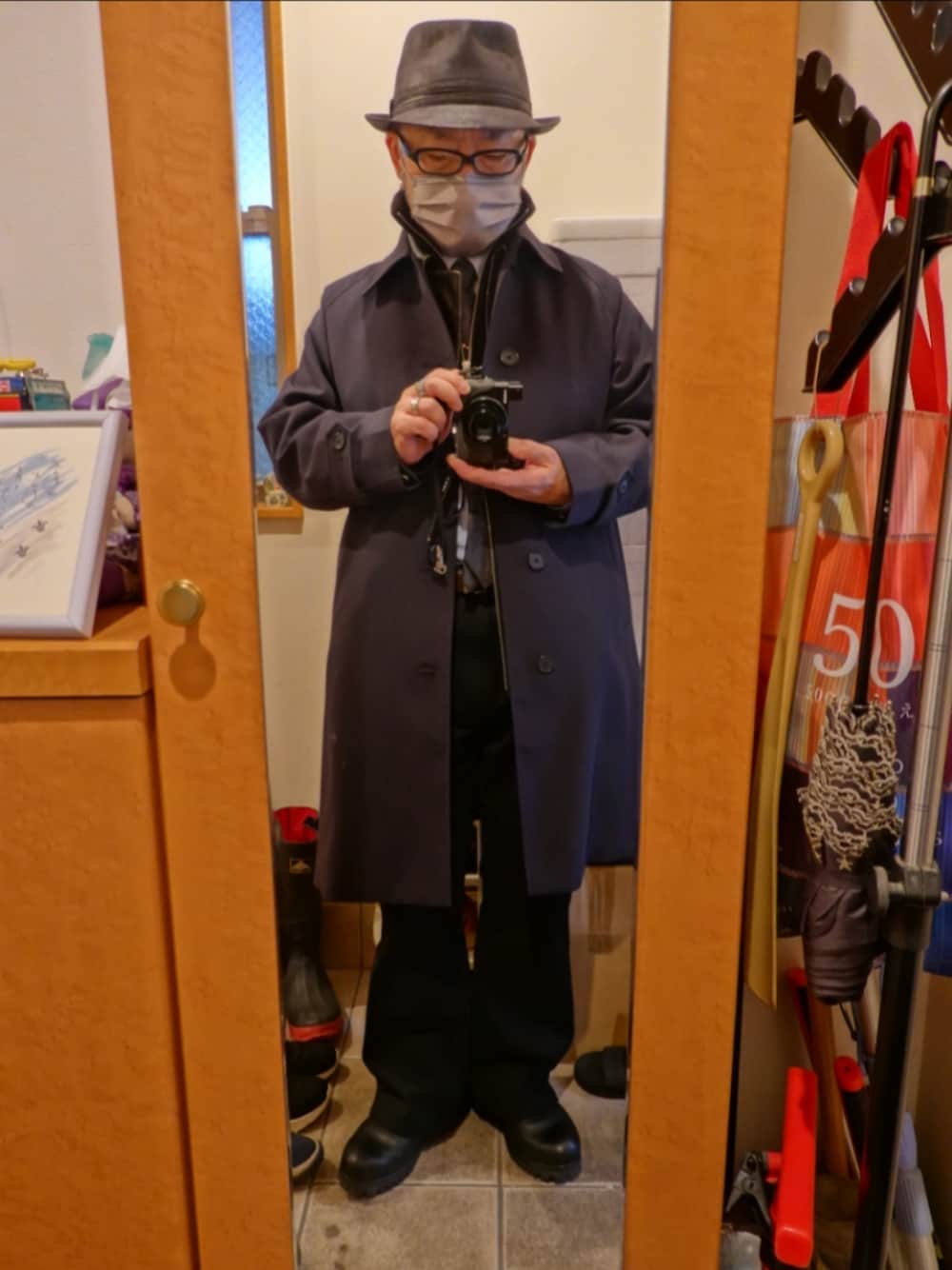 マキシ丈のコートにするとフレアデニムのラインが見えなくなるので、ノーマル丈のシンプルなバルマカーンコートを選択。 合皮ブルゾンとジップベストだけでは今日の寒さに耐えられないので、コートを羽織りました。→2枚目参照。 久しぶりに履いたTimberlandのブーツですけど、家に帰って脱ぐさいに、踵のソール部分が剥がれてしまいした。 ボンドで接着、自分で修理する人です。