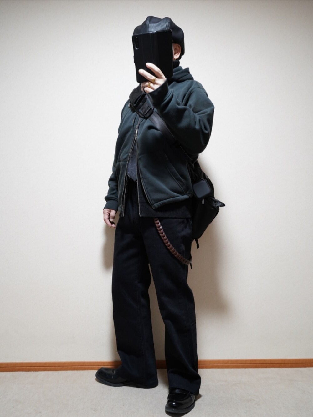 ジップジップてカジュアル強めなので… 合皮ですけど靴にキャスケットを綺麗めにしました。 インナーもシャツ&ネクタイ♪〜