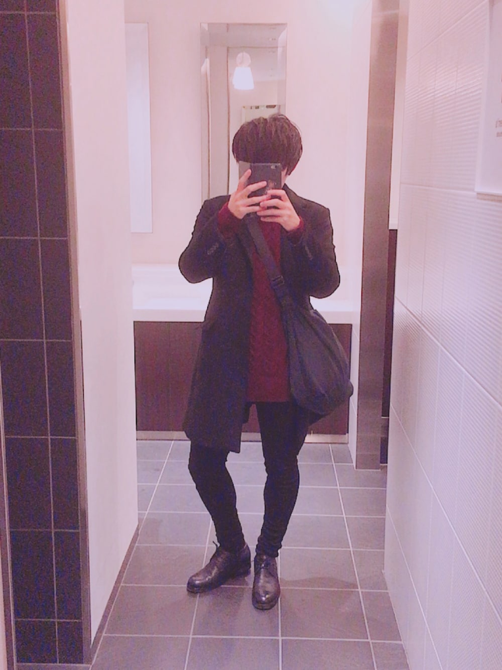 革靴を合わせた冬コーデ ポイントはサコッシュ 足がサッカー足だからスキニー似合わないけど着たいから着る(笑) ファッション初心者なのでご指摘&感想いただけたら嬉しいです! #LIDnM #HARE #GU #MONO-MART #冬コーデ #私服デート #黒コーデ #シンプルコーデ