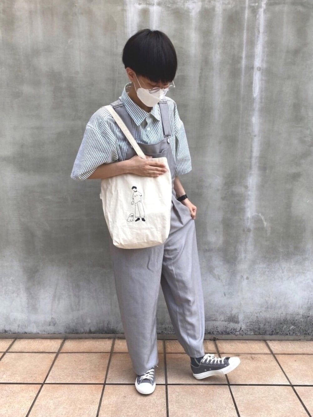 オーバーオール×緑 コーデ! 昨日に引き続きpairpairの商品を使ったコーデです! 新作のオーバーオールは素材が薄くて軽くて、さらっとしてます!夏でも着られます!🌞 靴下かわいいのでアピールしてます笑 トートバッグはtomboniaさんのもので、原宿でPOPUPをやっている時に買いました! 🐶のほんわかしたイラストが、柔らかい雰囲気のコーデによく合います◎ 皆さん今日も良い一日を〜🤞