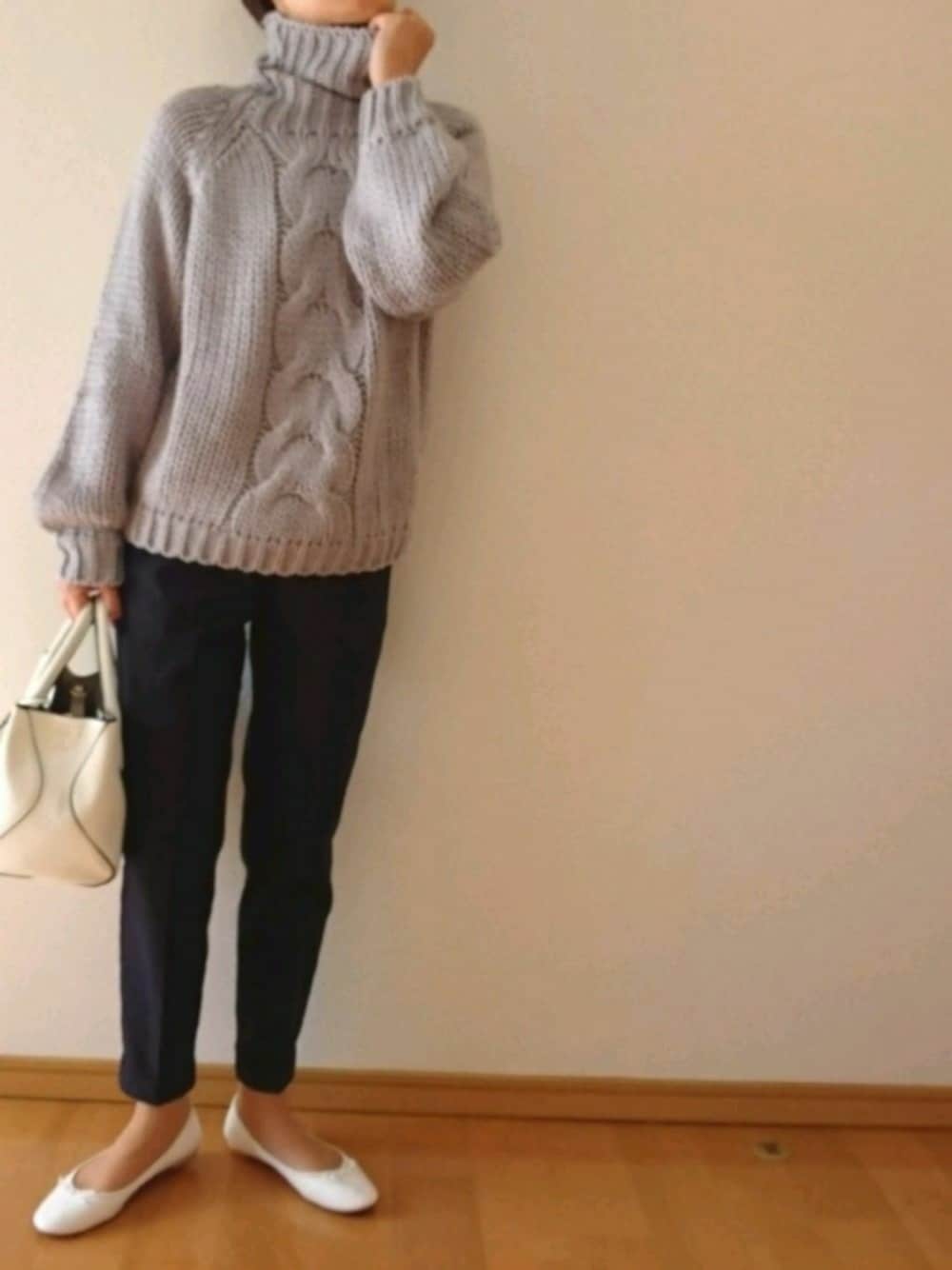 r。のニット/セーター「ざっくり編みフロントケーブルニット」を使ったコーディネート