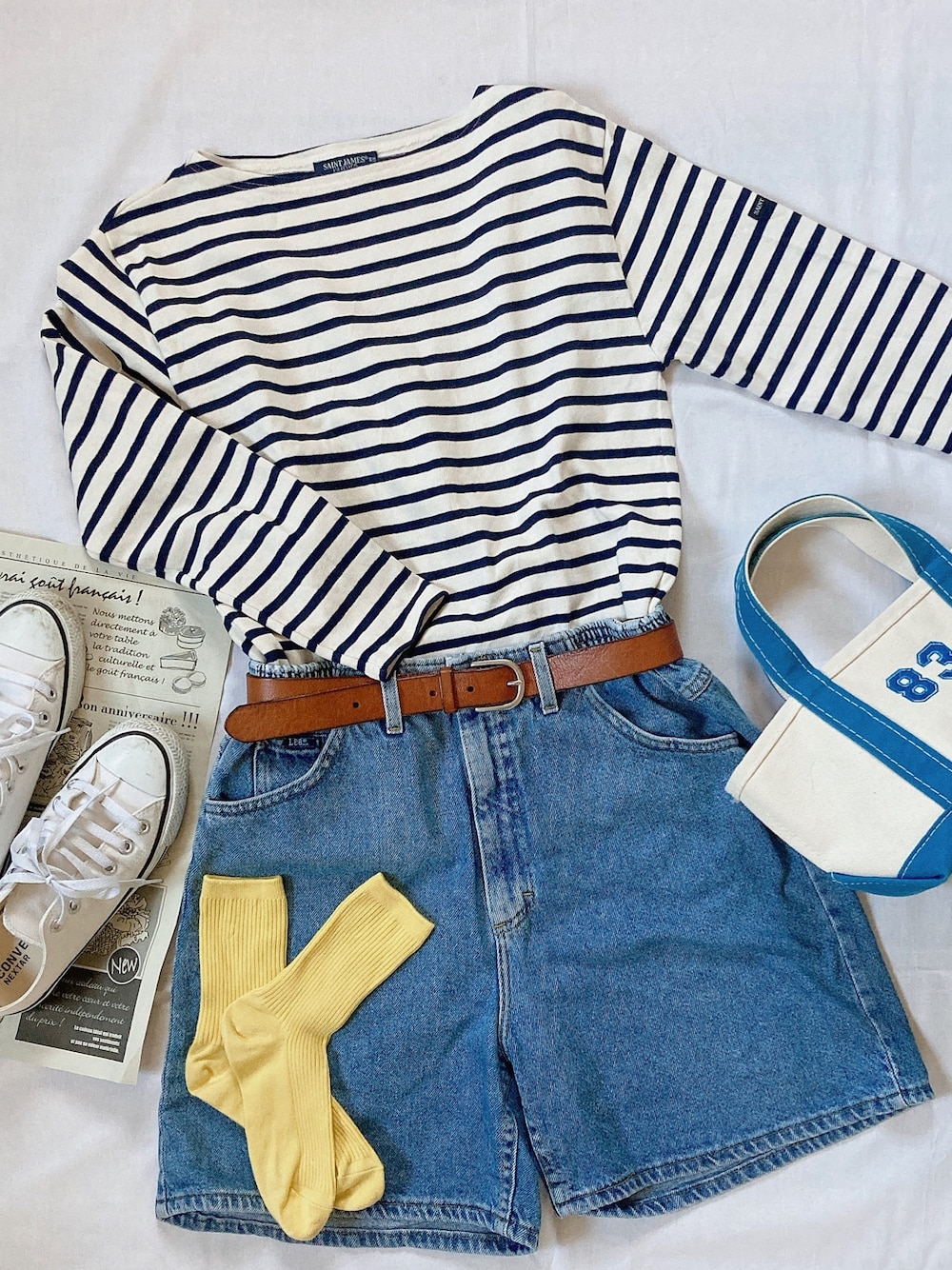 r。のTシャツ/カットソー「SAINT JAMES(セントジェームス) OUESSANT "BORDER" [ NEIGE/NOIR(WHBK) ] ウエッソン “ボーダー”[白/黒]」を使ったコーディネート