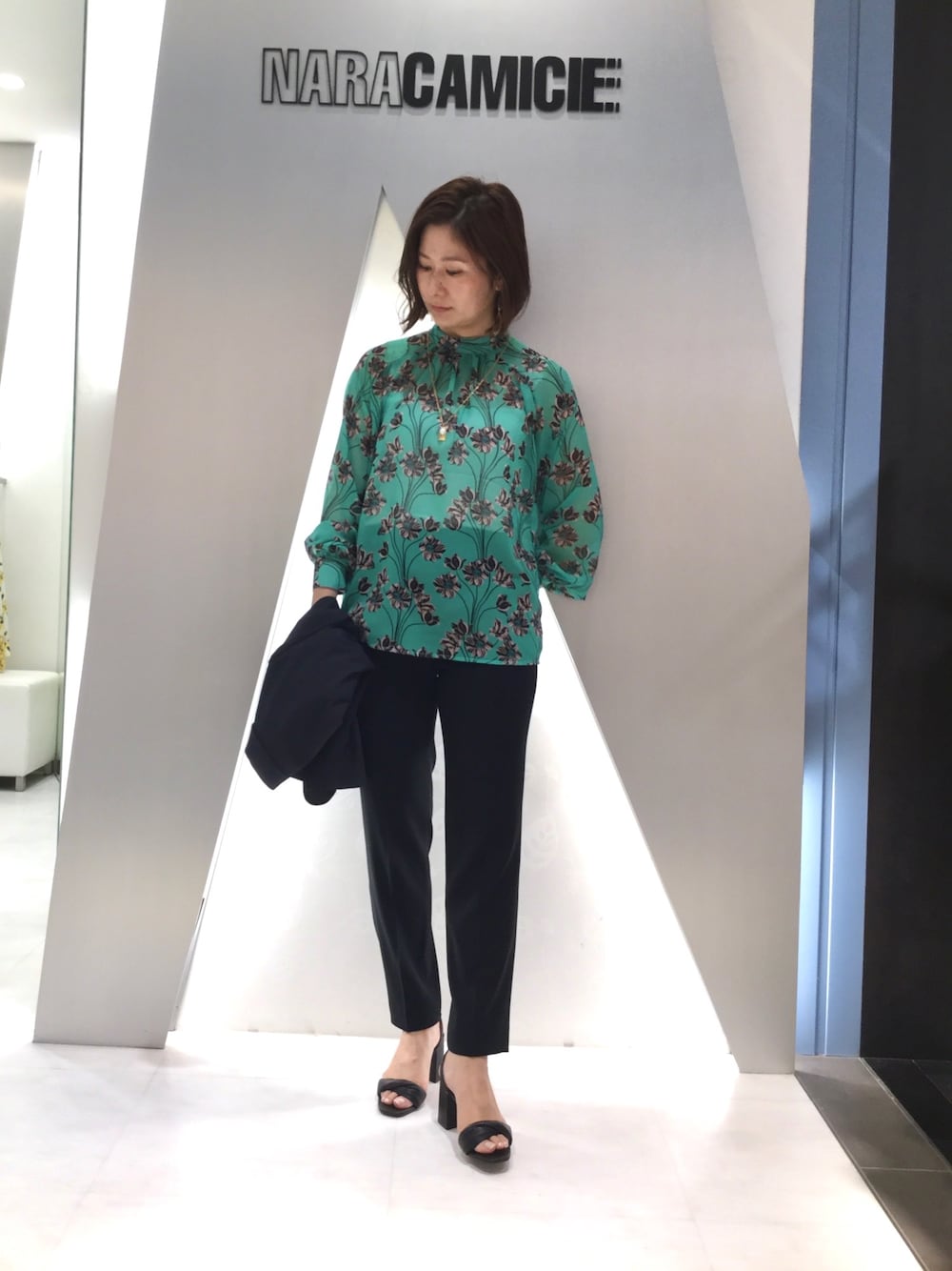 ブラウス:10-11-01-025 1サイズ/23カラー パンツ:30-11-09-704 1サイズ/19カラー 綺麗な発色のブラウスにシックな花柄が効いています♪ 1枚でオシャレ感UP☺︎ 手洗いOKでノーアイロンで着れます。