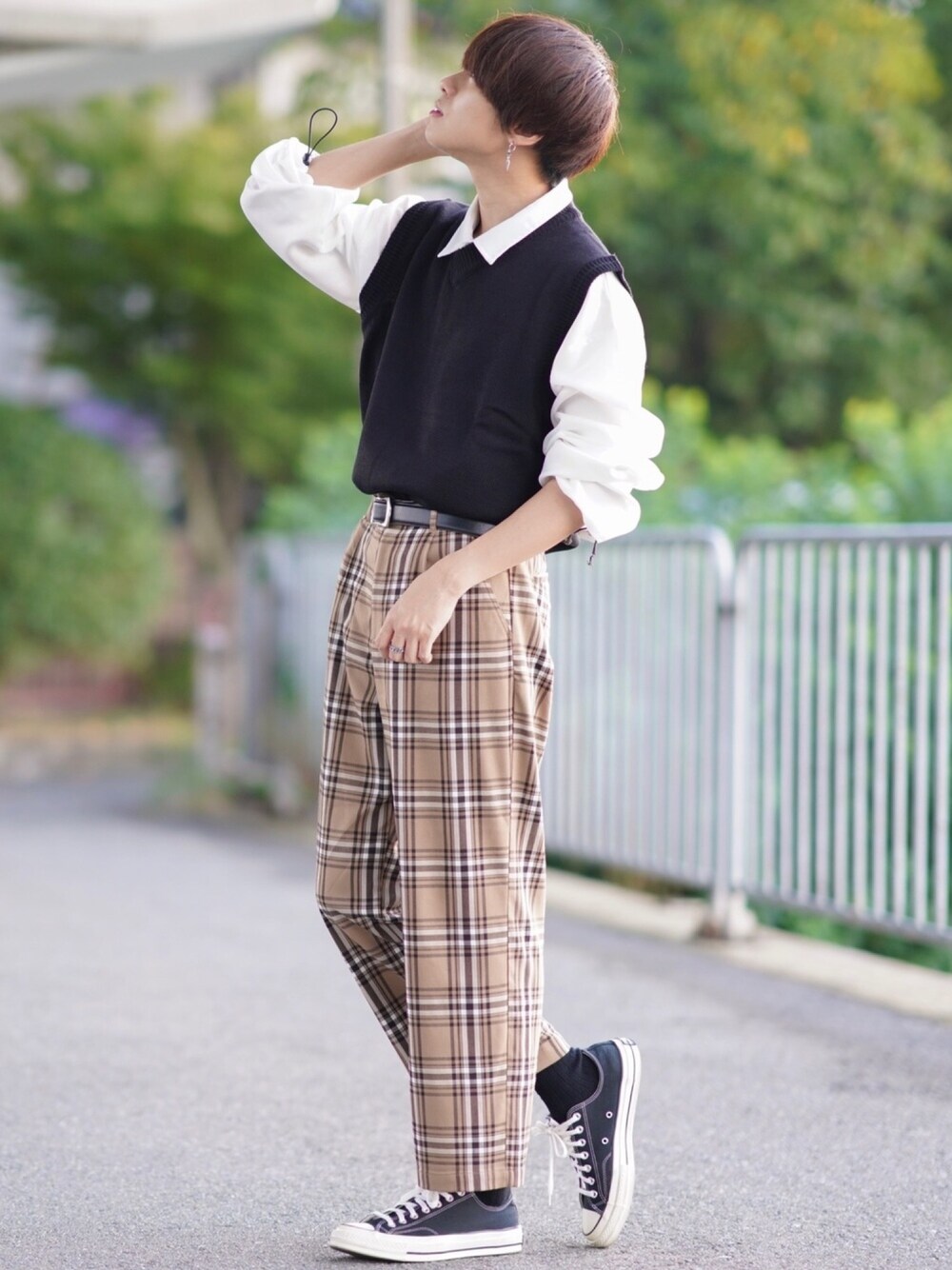✳️【プチトレンド】ニットベストタックイン✳️ ⠀ ⠀ ⠀ ちょこちょこ見かけるこのスタイル。 最近はニットベストをタックインしてるスタイルをたまにみかける😳 ⠀ ⠀ ⠀ 韓国系のファッションの方がよくやってるみたい🤤だから韓国系のコーデでチェックパンツにインしてみたよ🙆🏻♂️結構気に入っていて最近よくやってます🙋🏻♂️ ⠀ ⠀ ⠀ オススメしたいのはこのニットベスト😋 Herdenのベストなんやけど、サイズ感が超好き🙆🏻♂️生地はしっかりしていて文句なし🙅🏻♂️ニットベストはVネック派なので、僕にとっては最高のニットベスト🧶 ぜひチェックしてみてね! ⠀ ⠀ ⠀ 僕のデザインした袖の絞れるオリジナルシャツと合わせたよ😛絞って作る袖のボリュームがコーデをよりオシャレに見せてくれるよ😚 ⠀ ⠀ ⠀ 参考になったら嬉しいです🥺 Instagram @wear_shota もぜひフォローしてください🙆🏻♂️ では!