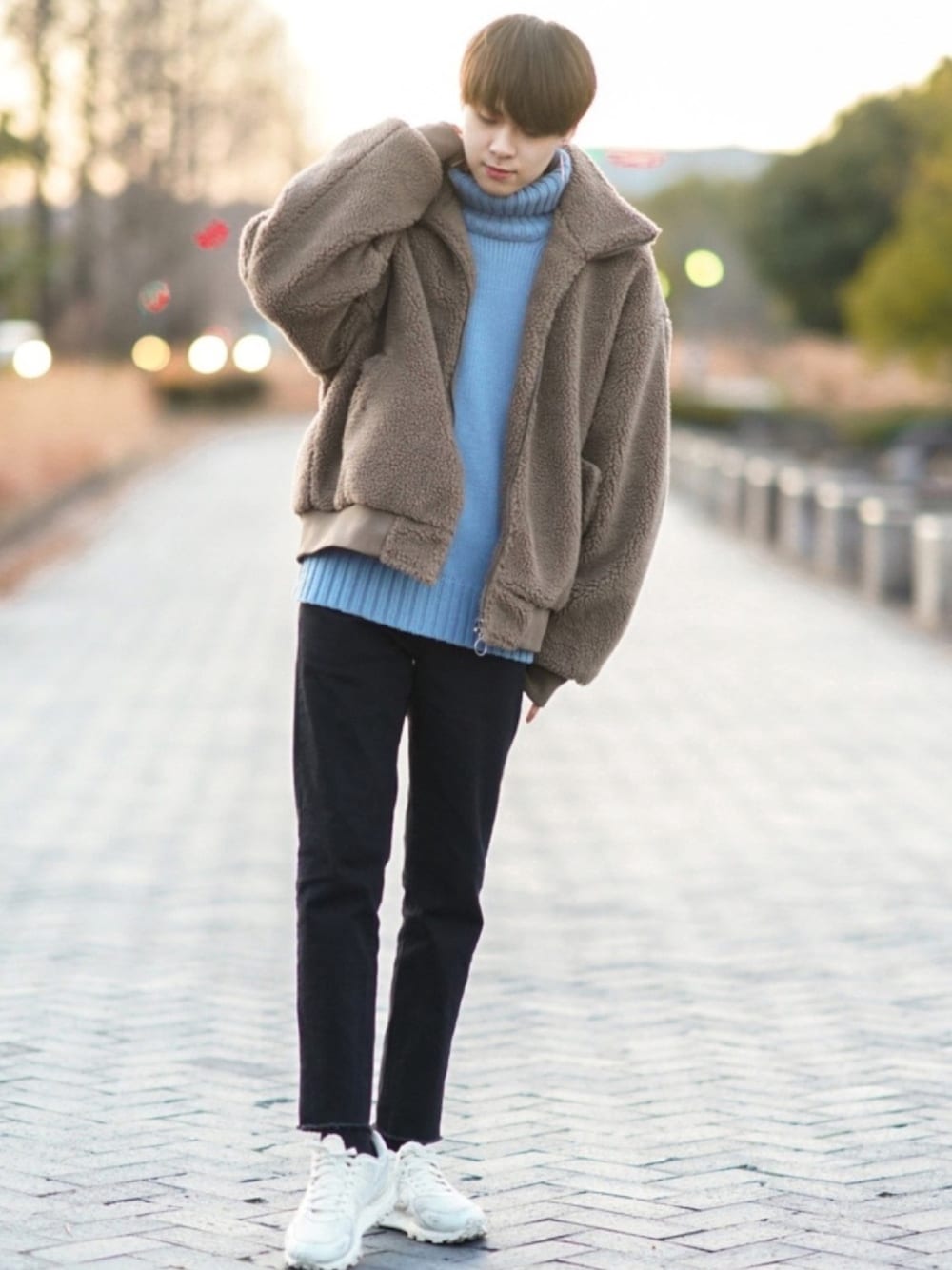 【コーデ】 いつも閲覧ありがとうございます😊 今日はGUの水色タートルネックにボアで配色にこだわりつつ可愛いコーデをやってみました🧸 GUのタートルネックほんまにクオリティー高いから感動しています♪ まだ持ってない方はぜひおすすめです! パンツは細すぎないスキニーパンツ✨ ピチピチが苦手な方に履いてみてほしいしれものです!足が長く見えるし🦵最高ですよ♪ シンプル合わせるのが良いと思います♪ 参考になったら嬉しいです♪ ーーーーーーーーーーーーーーーーーーーーーーーーーーー 🔹SHOTAです🔹 閲覧ありがとうございます🤗 たくさんのいいね・お気に入り・コメント・フォルダイン ・フォローいつも励みにさせていただいてます🙏❣️ また僕のオリジナルブランド『EDEL』が6月にオープンしました♩ZOZOTOWNでチェックできますし、Instagramのアカウントもあるのでよければフォローしていただけると嬉しいです✨よろしくお願いします🤗
