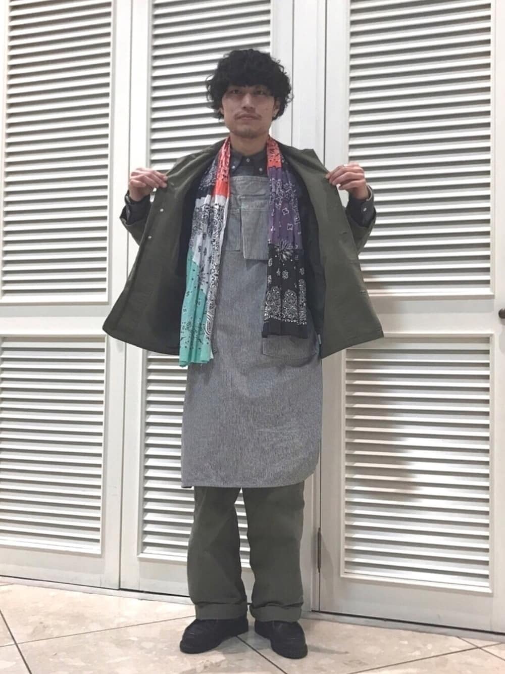 ジャケットからチラ見えさせるように垂らしたり、巻いてもトップスにボリュームを出せる万能アイテムです! バンダナ好きな僕は即買いでした