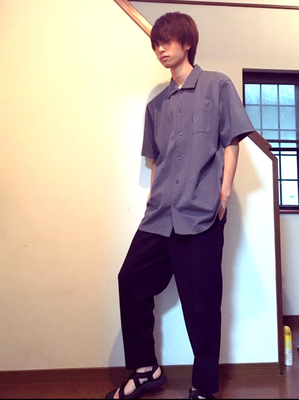 今回は上の服はXLを着てます!! 大きめできてバランスよく細身をカバーしてきてます笑 もう外ではしばらく取らないかも 家の中だといいところないけどある程度服が見やすい場所があったのでここで撮りました! ってことでもう夏バテです