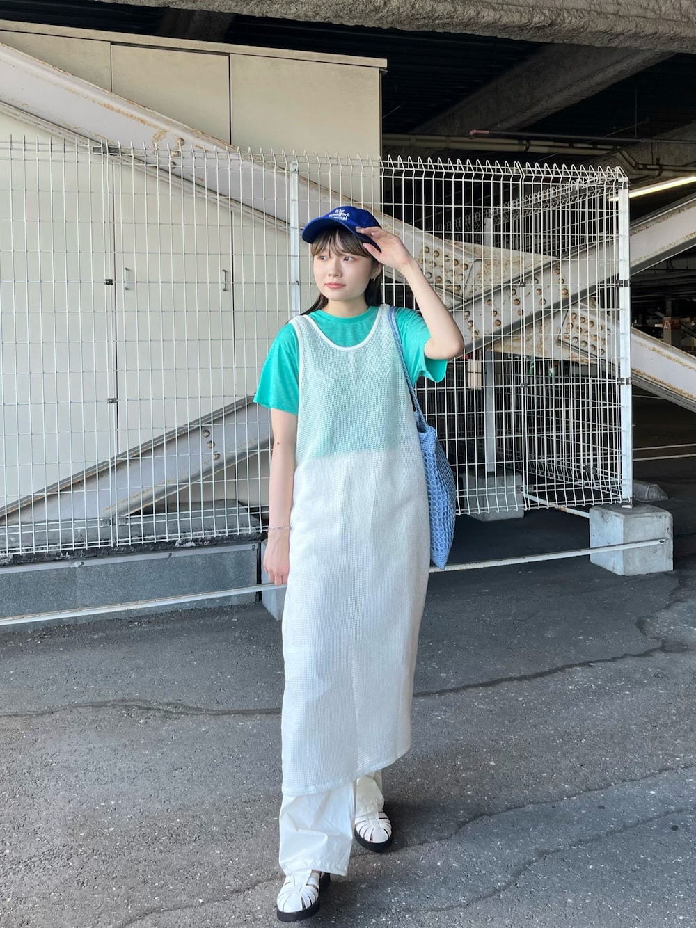 ご覧いただきありがとうございます🧊 メッシュワンピでつくる 爽やかな夏コーデです💙