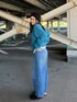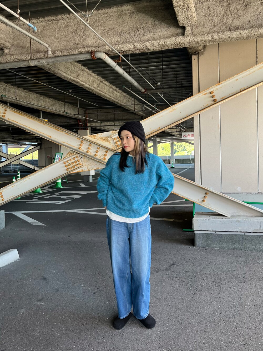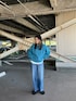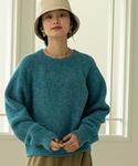 ふわっとしたブルーニット 近くで見ると色んなカラーがミックスされていて とってもかわいいんです♡ キレイめにももちろん活躍しますが 今回はデニムでカジュアルに。 袖のボリューム感と Tシャツとレイヤードできる丈感が オススメポイント◎