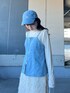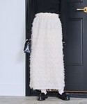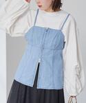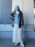 デニムがアクセントの春コーデ🦋 デニムキャミソールと 毛足の長いふわふわとしたナロースカートで トレンド感ある女性らしい着こなしに。
