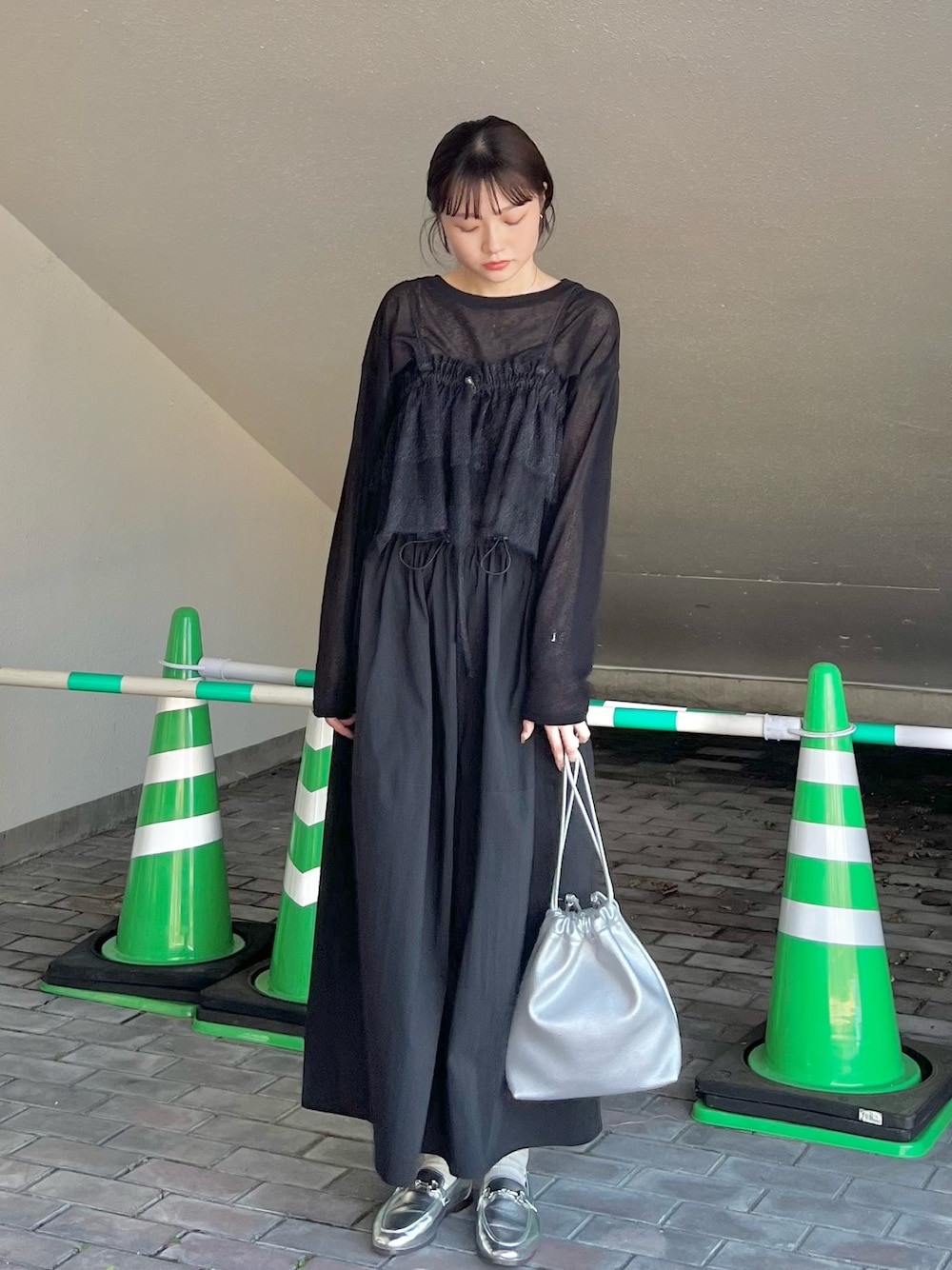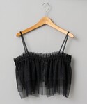 夏でも楽しみたいブラックコーデ🖤 涼しげなシアーのトップスに ラメチュールをレイヤードしました🪩 お持ちのトップスにレイヤードできる ラメチュールはコーデの幅がぐっと広がります◎ 中央に調節可能なドロスト付きなので フィット感も調節できますし、 様々な着方ができるのが嬉しいですね🌼