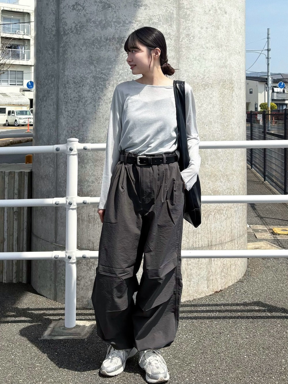着るだけでお洒落上級者見えする ラメシアートップス✨ 今回はメンズのワイドパンツと合わせて 上下メリハリを持たせ 全体をグレーでまとめました🩶 シアートップスは透けすぎる感じがなく 使いやすいなと思います♪ レザーライクショルダーバッグは 柔らかく持ちやすい! 持ち物が多い私にぴったりでした! マグネットボタンで簡単に閉じて便利◎ 全カラー欲しい…!