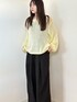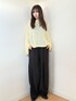 トップスのメッシュニットは、 イエローカラーが春らしい 一枚でオシャレになるオススメアイテムです🌼 前回着用のカーブパンツと合わせてみました◎