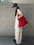 夏コーデそろそろマンネリ気味ですよね… そんな時は小物から秋を取り入れて🍂 全体はホワイトでまとめて、 赤いバッグでアクセント👜❤️ レースキャミワンピースを 夏コーデにプラスで ガラッと印象を変えていきましょう◎ そしてリアルバイしたこちらのパンツ! ウエストはゴム仕様で ほんとに楽チンでキレイなシルエット✨ シワになりにくいのが嬉しいです! キレイめにも、カジュアルにも使える 万能アイテムです♪