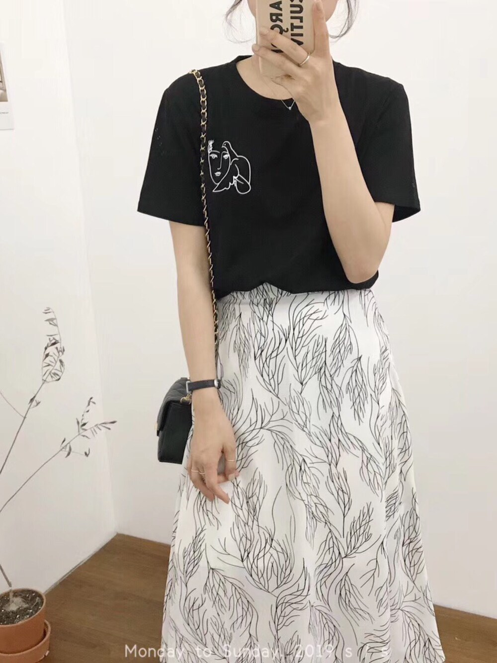 线条风[ 短袖T +半身裙 ] 黑+白经典搭配 裙子带内衬 腰后半围松紧设计 很日常的一套🤞🏻