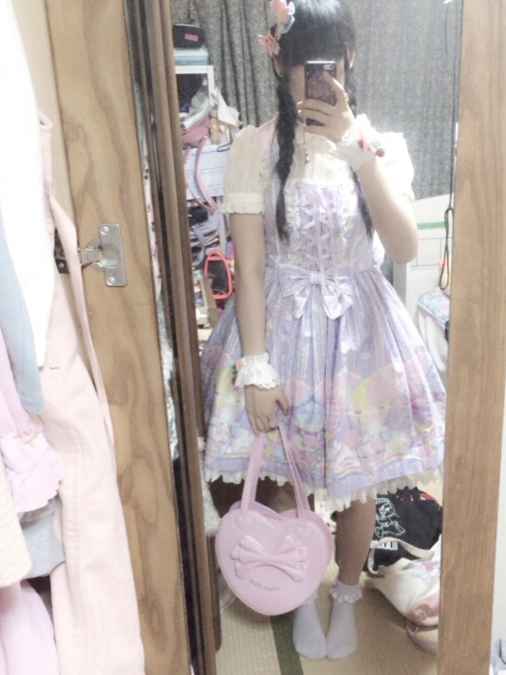 JSK:Angelic Pretty ブラウス:Inncent World お袖止め:Angelic Pretty (頭の)ブローチ:Angelic Pretty バッグ:Angelic Pretty ママとお出かけで久しぶりにロリィタ着たー! この時期はコートとかも着ないから可愛い柄が見せれていっぱい着たくなります、暑いけど(笑)
