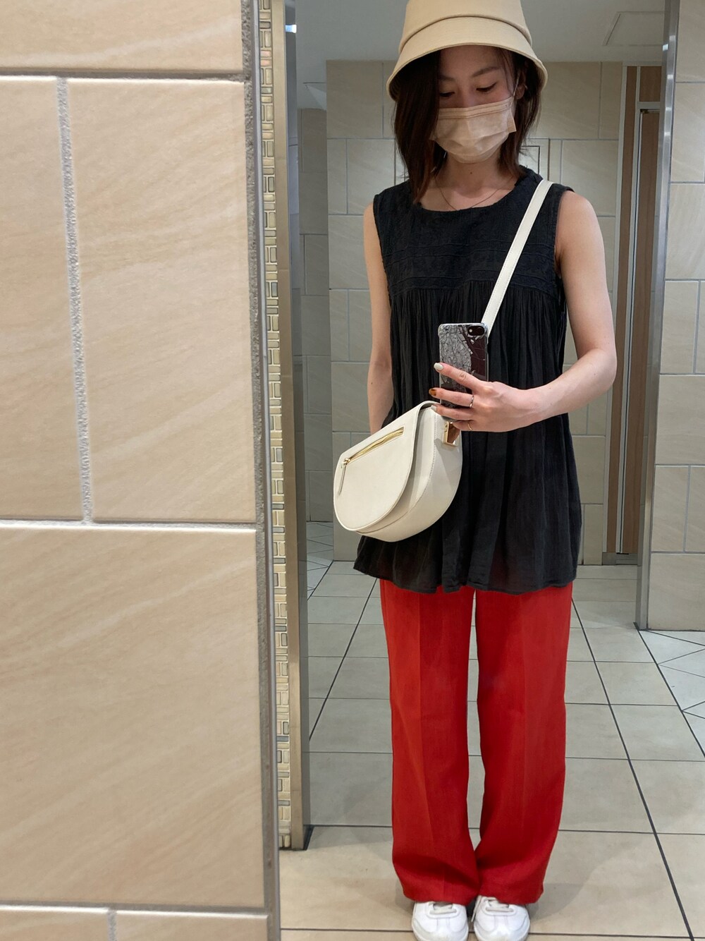 暑すぎたので真夏コーデ🖤❤️🤍 自分の二の腕のたくましさ、割と好き😂