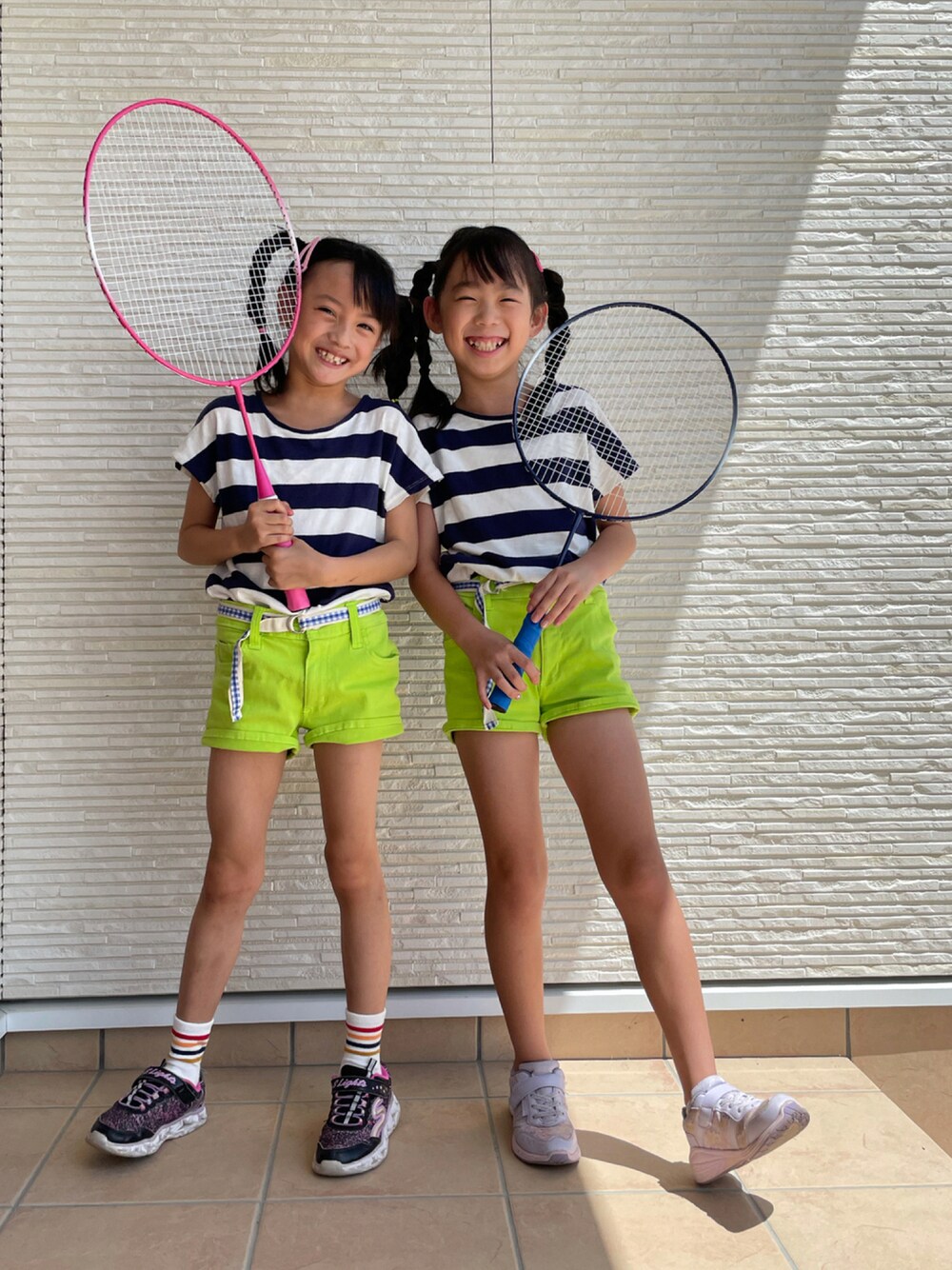 ☺︎双子コーデ☺︎ 元気にビタミンカラー💚 夏休みも残り半分! 制限ある中だけど楽しもう〜(*´꒳`*)