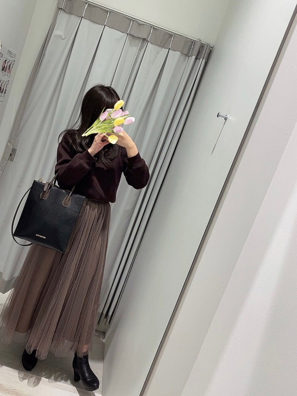 ブラウンコーデ🧋🤎 チュールスカートがお上品で お気に入り♡♡ 身長低めですが、ブーツ履くと そこまでスカートの長さは 気にならず…って感じです