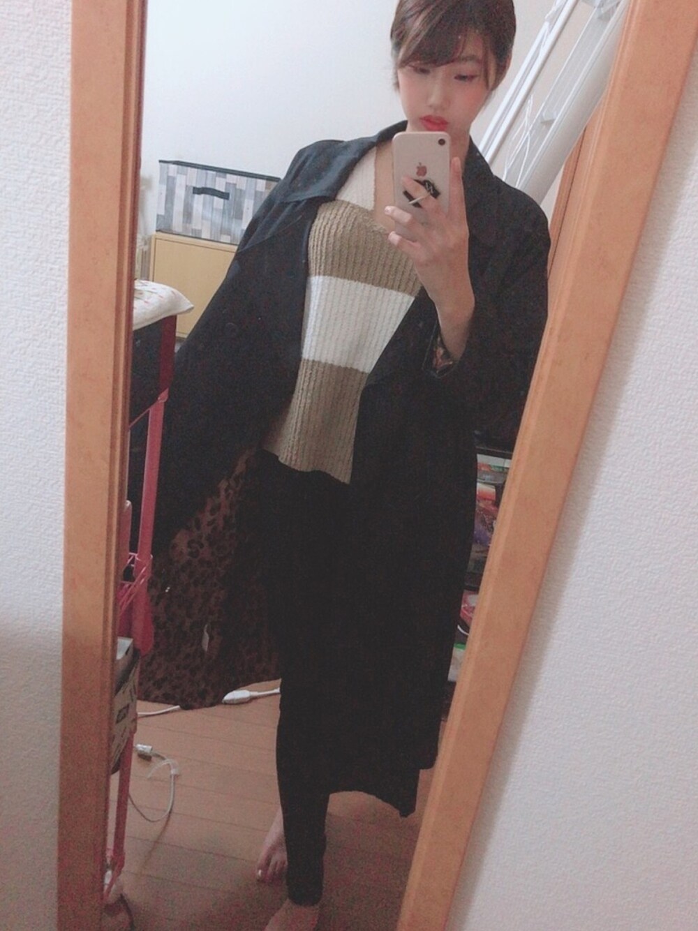 やっとこのトレンチ着れた!! 今日もお気に入りショップでお買い物しました☺️ このニットも肌触り良すぎるのでお気に入りです🧡