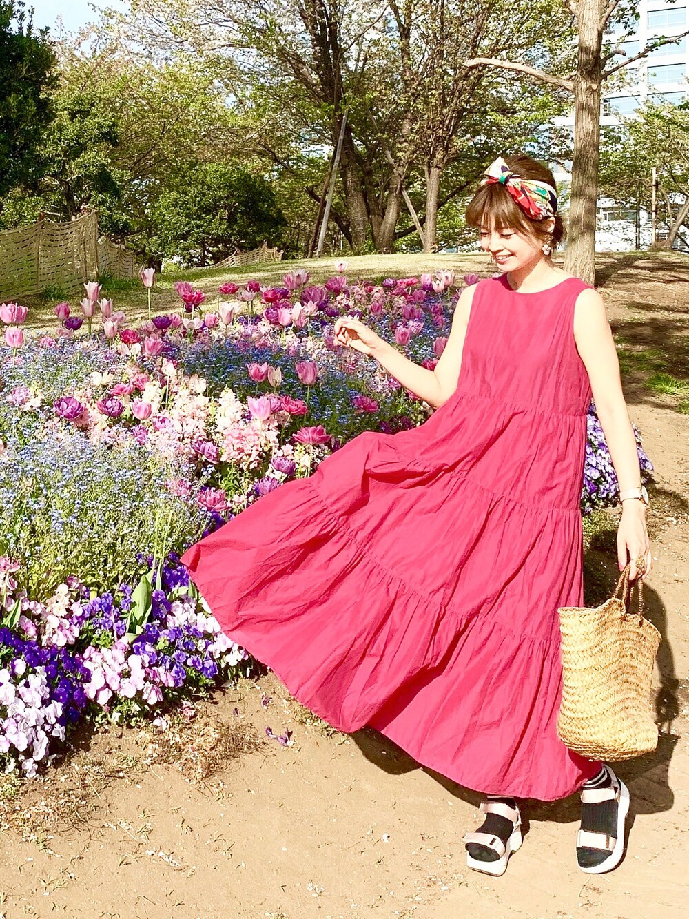 GUのティアードワンピはチューリップカラーのピンクにしたよ🌷
