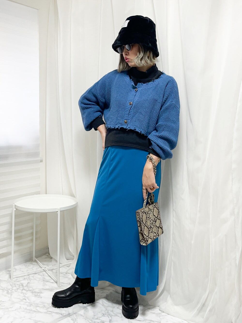 バケハコーデ。 ブルーマーメイドで ブルートーンにした日🚙=꒱‧* たまには辛口にも。