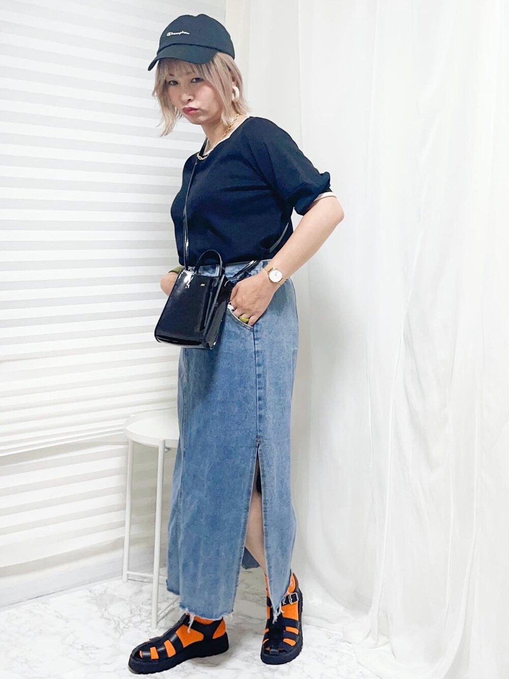 デニムスカートコーデ👖 サイドスリット入りで可愛すぎる! クラッシュ感もお気に入り💓 今年はデニムスカートにもハマって デニム率高い!