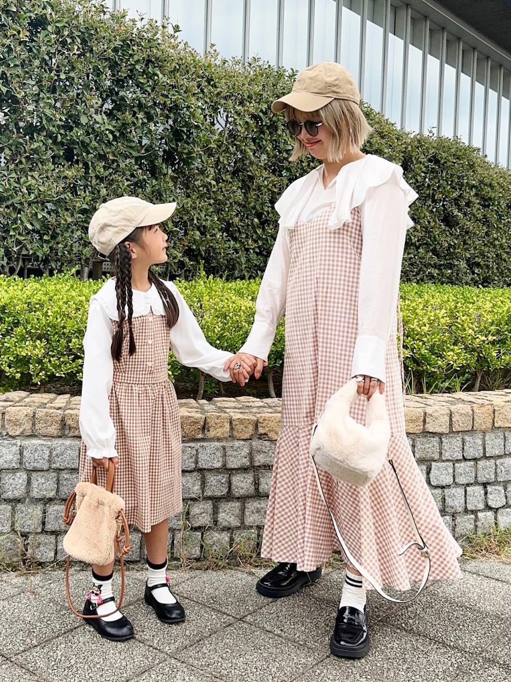 ギンガム親子コーデ🤎 リンクコーデ大好き😘 ビッグカラーでほの甘に。