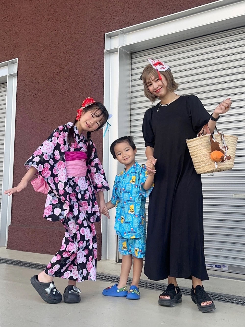 お友だちのマンションで夏祭り🎇 浴衣着たかったけど、準備と片付けもあったから 楽ちんワンピにお面でそれっぽく参戦したよ👘 みんなで屋台メニュー手作りして 子どもたちは大はしゃぎ♡ こういうのが夏の思い出だよね🌻 プチプラ小物でも、 ちゃんと夏気分味わえた日でした✌️✨