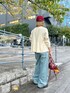 秋はイベント多すぎ🍂 学校行事にも普段使いもOKな きちんと見えニット🧶☕ シンプルだからコーデ選ばないの👖 後ろパールも抜け感あって優勝♡ フレア控えめだから着膨れしないのも最高だよ🍁 ラブブはミッキーカチューシャでおめかし✨