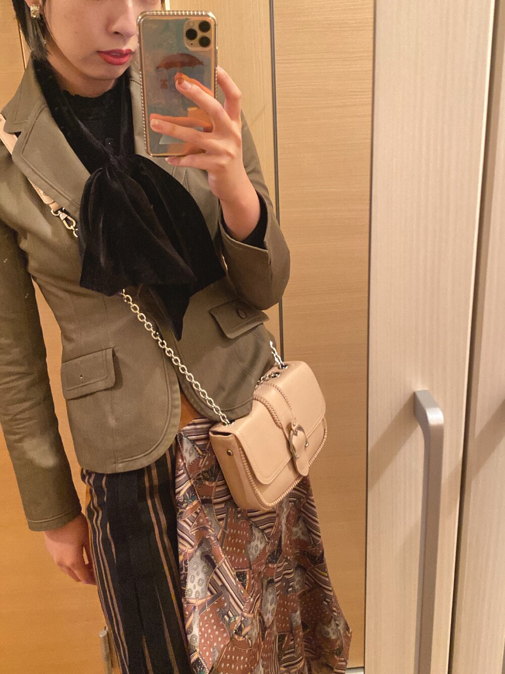 今日の仕事着可愛いすぎたのでup このバッグチェーンも大きさも色味も全部お気に入り🤍