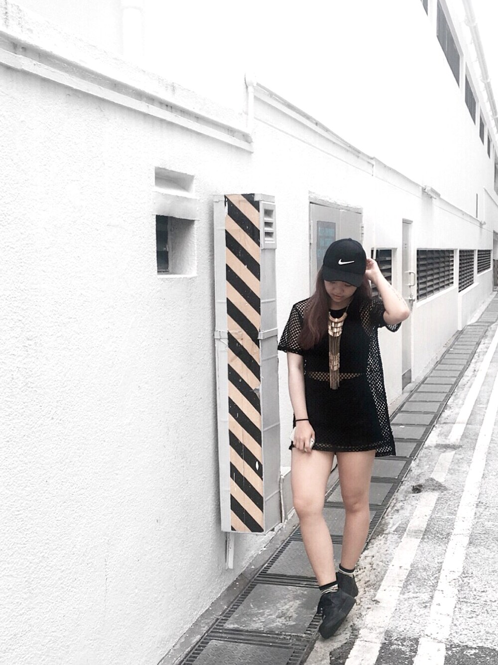 Sermin Leeのスニーカー「NIKE ナイキ AIR FORCE 1 '07 エアフォース 1 '07 315122-001 BLACK/BLACK」を使ったコーディネート