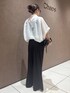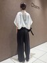 ホワイト✖️チャコール ラフなのにしっかり綺麗めなスタイル ◽︎サマーレダールパンツ 24/FWで大人気だったレダールスキッパーシリーズから 素材を変えて登場 ワイドのゆったりしたシルエットですが艶感のある素材でラフなのに決まる一枚