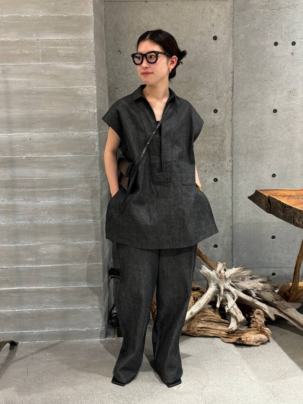 •バナックデニムsetup トップスは深めVと小さめ襟で、パンツはワイドシルエットのカッコよくて着こなせるリジットデニムsetup オーバーサイズですが抜け感がしっかりあるのでカジュアルすぎない印象に✨