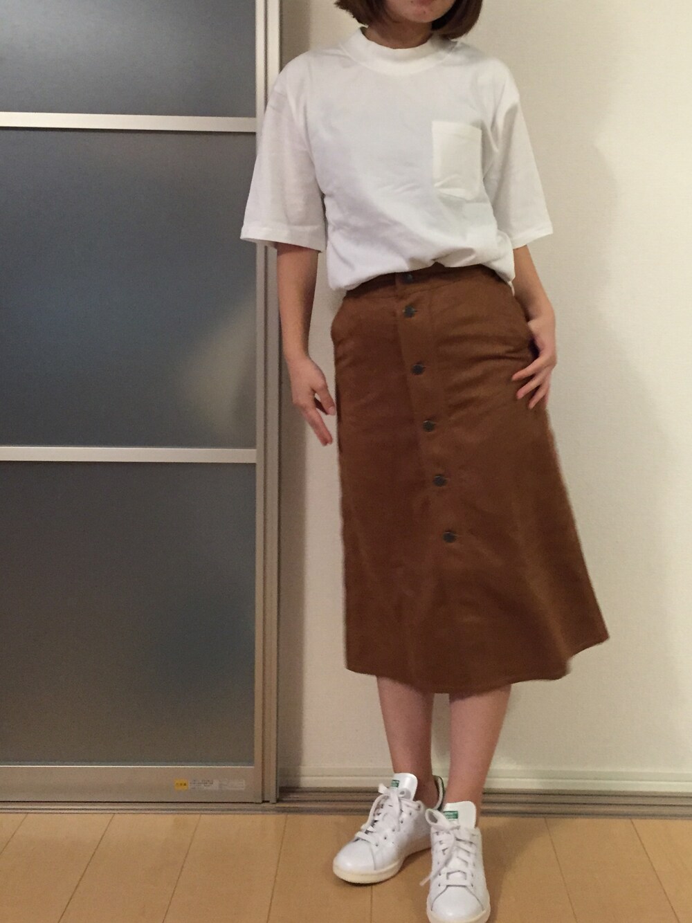 やっと手に入れました。スタンスミス様。 本当はネイビーが欲しかったけど、どこ探しても22.5のサイズがない‥ このスカートはスェードでかわいいけど、下っ腹目立ちますね💧