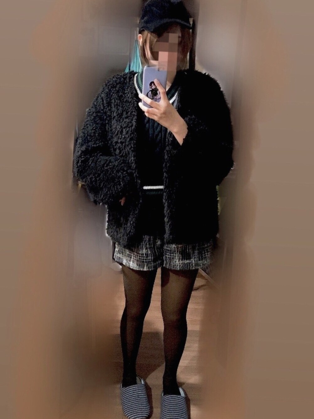 風が冷たくなってきたけど カジュアル系で元気っ子コーデ✨ 中のショートベストがすごく可愛いの💕 Vネックのベストでお色もgood! ちゃんと見えてなくてごめんなさい🙏 全体的に黒系でまとめてみました\( 'ω' )/