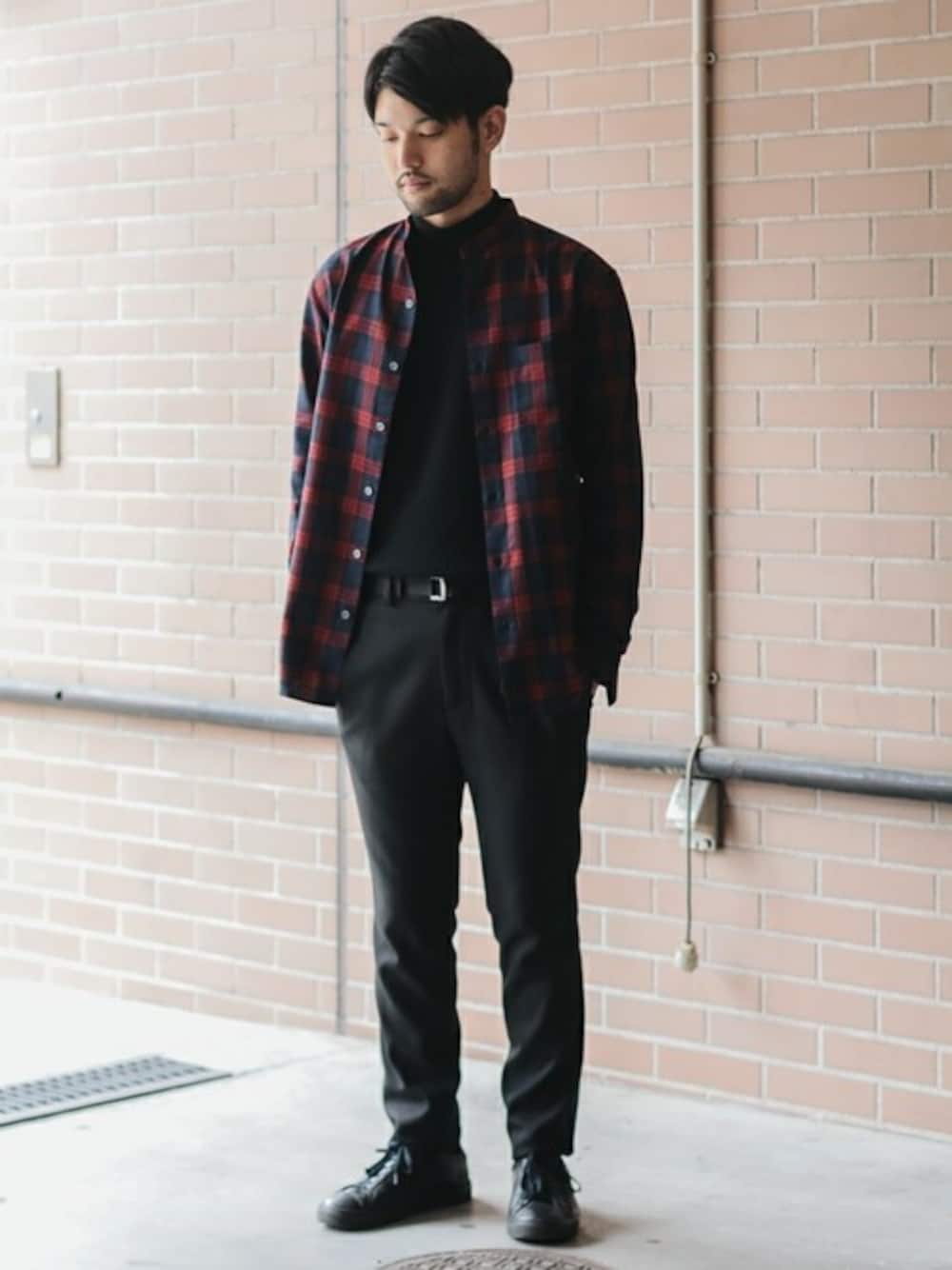 新ブランド"main attraction"を使った新作コーデ。 クラシカルなチェックシャツとスラックスを合わせたキレイ目な装いに。 モックネックをタックインするなど小技を効かせて上質なスタイルに仕上げました。