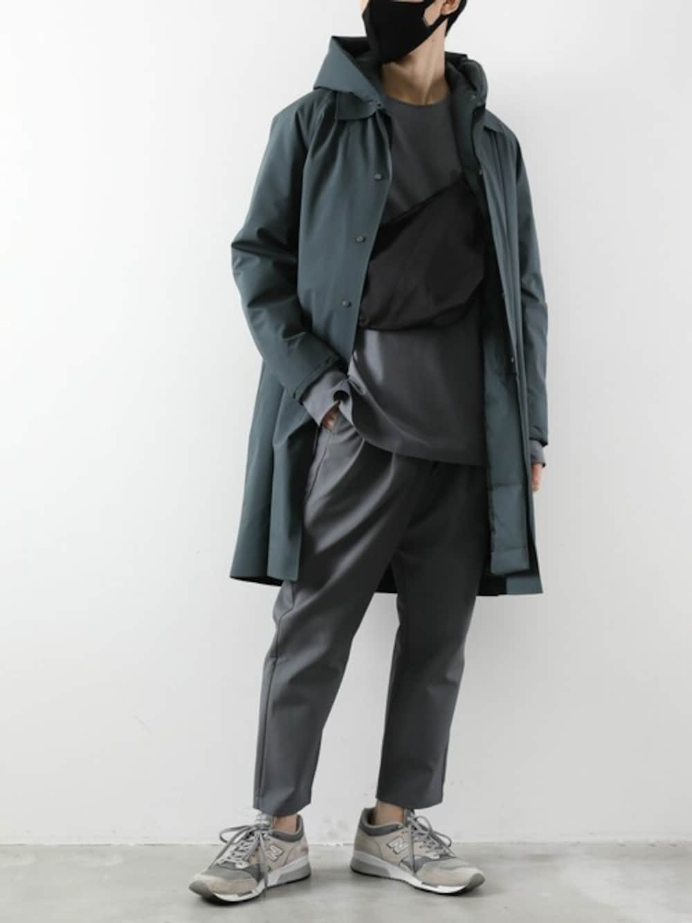 3wayで使えるATTACHENTのフーデットコート。 インナーやボトムは淡いグレーでまとめて、 ヨーロピアンなスタイルに。