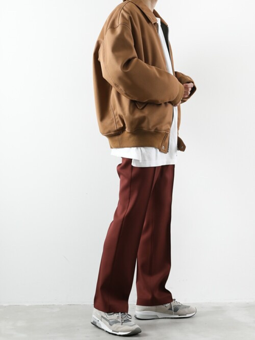 高機能中綿入りのフライトジャケット。 ボトムはフレアパンツでエレガントな印象に。