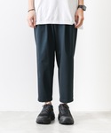 艶のあるポンチ素材を使ったattachmentのセットアップスタイル。 ストレッチの効いた快適な着心地。 ワイドパンツと合わせて少し緩さを出してみました。