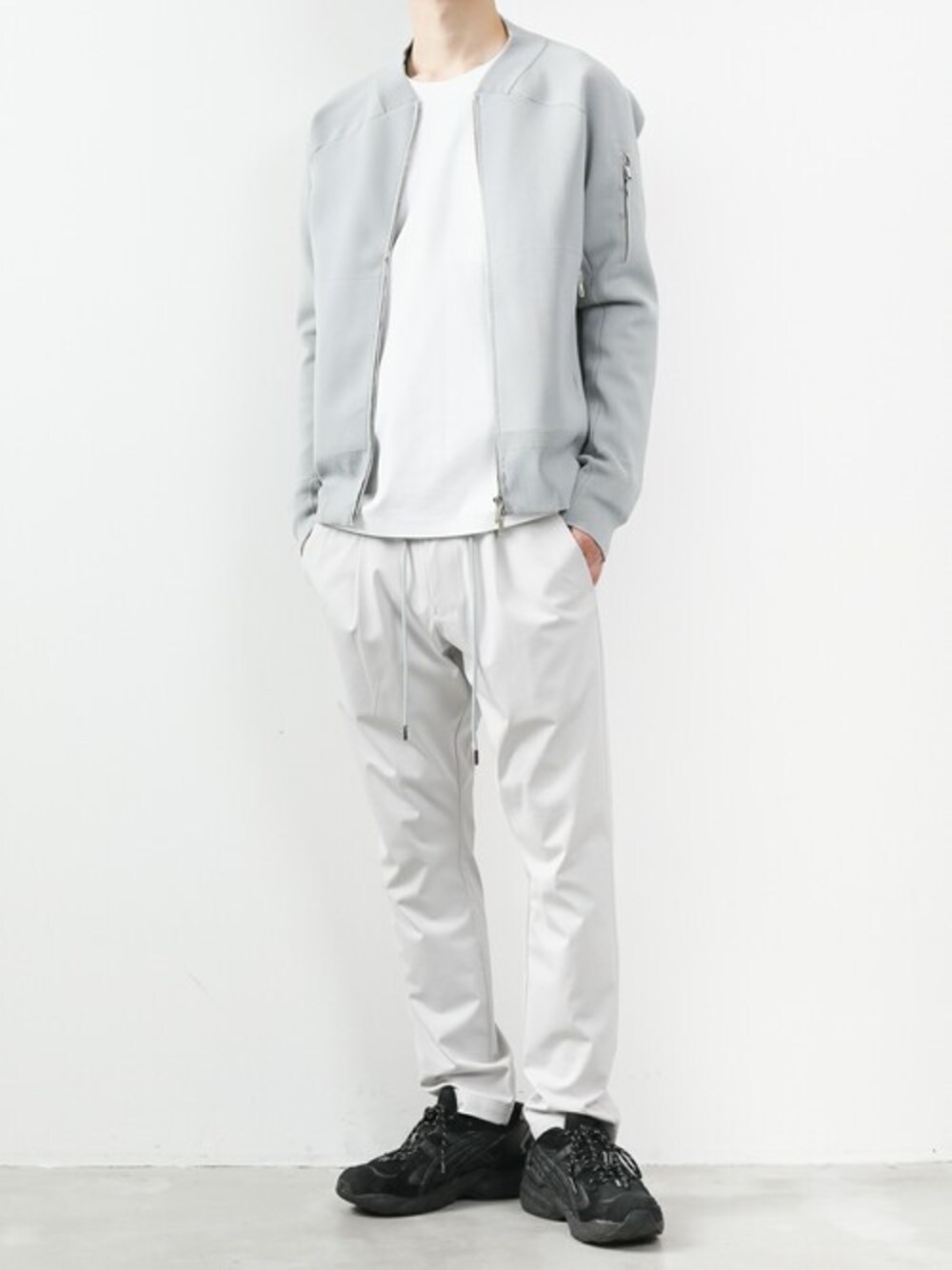 ニット素材のMA-1を使ったスタイリングです。 春らしくホワイトベースでまとめて柔らかな印象に仕上げました。