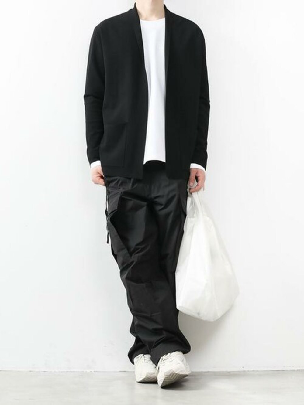 春にさらりと羽織りたいミニマルデザインのカーディガン。 伸びや縮みに強い化繊を使ったニット織で品良く仕上げています。 直線的なフロントラインが洗練された印象を与えます。