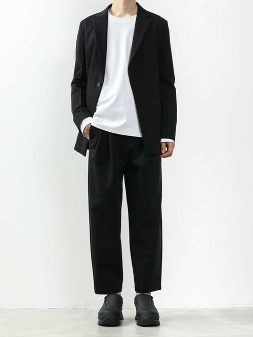 ジャージ素材のイージーなセットアップスタイルです。 今シーズンはミディアム丈のブレザータイプでのご提案。 フォーマルな印象のブレザーを高機能な素材やミニマルなデザインで、 ATTACHMENTらしく仕上げています。 ビジネスにカジュアルに使い勝手の良い1着です。