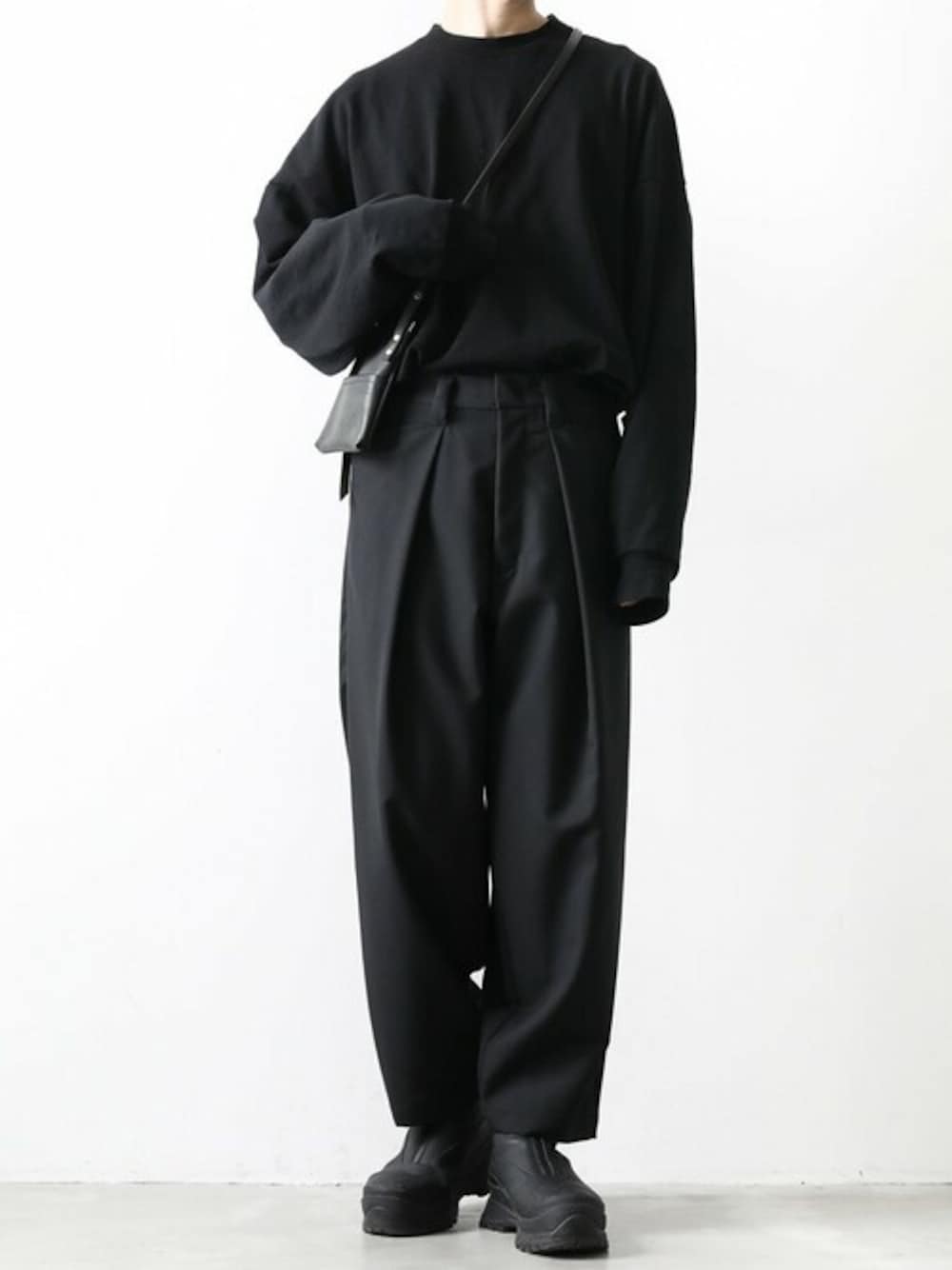 フロントのタックが特異な表情のワイドパンツ。 ストンと縦に落ちるスマートなシルエット。 いつものスタイルに少しの鮮度を与えてくれる新型のワイドパンツです。